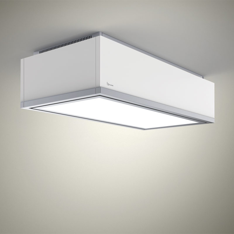 Un model de tavan, cu toată structura vizibilă care nu necesită instalarea cu cadru de oțel incastrat. Hota se caracterizează printr-un panou luminos de mari dimensiuni, ce ceraza o atmosfera placuta.