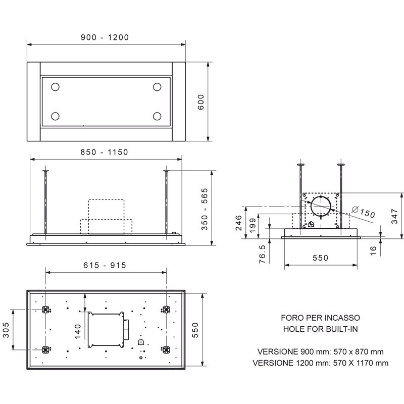 Motorul poate fi instalat deasupra hotei sau la o distanta de maxim 6 m fata de hota.
